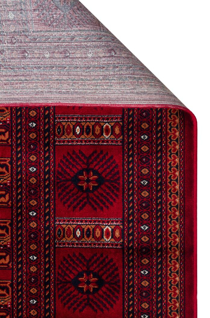 Afgan Desenli Viskon Sıkı Dokuma Kaymaz Tabanlı İnce Makine Halısı (HER 03 RED )